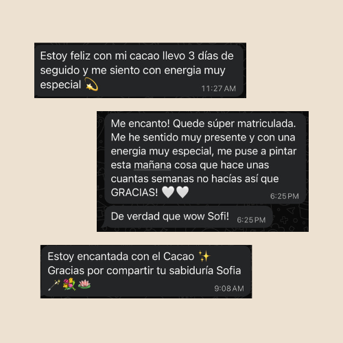 El cacao ceremonial no es solo un alimento; es una medicina natural que aporta nutrientes esenciales y ayuda a reconectar con tu interior. Cada taza es un momento para cuidarte y traer equilibrio.